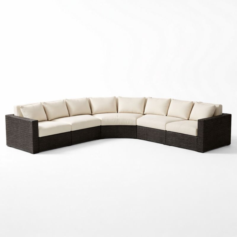 Canapé d'angle modulable en résine tressée et coussins crème